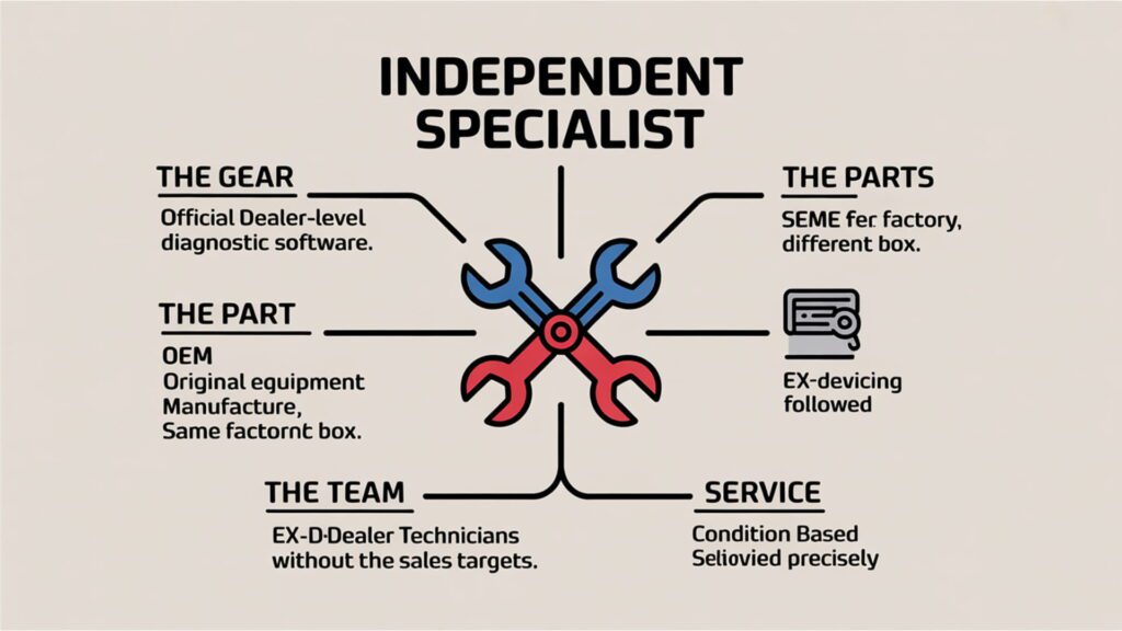 The main dealer’s the obvious choice, right? Except when you see the bill. Suddenly, that oil change costs more than a weekend away, and you’re wondering if there’s a better option that won’t leave your wallet significantly lighter.